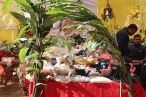 मेलामा जिल्ला स्थित किसनहरुले आफूले उत्पादन गरेका कृषि उपजहरु ल्याएर प्रदर्शन गरेका थिए । फलफूल खेती देखि लिएर खाद्यान्न‚ तेलहन‚ दलहन‚ तरकारी‚ नगदे बाली‚ मसला बाली‚ मौरी‚ माछा‚ पशुपन्छी‚ अल्लोबाट बनेका सामाग्री र फलामबाट बनेका औजारहरुको मेलामा प्रदर्शनी गरिएको थियो ।